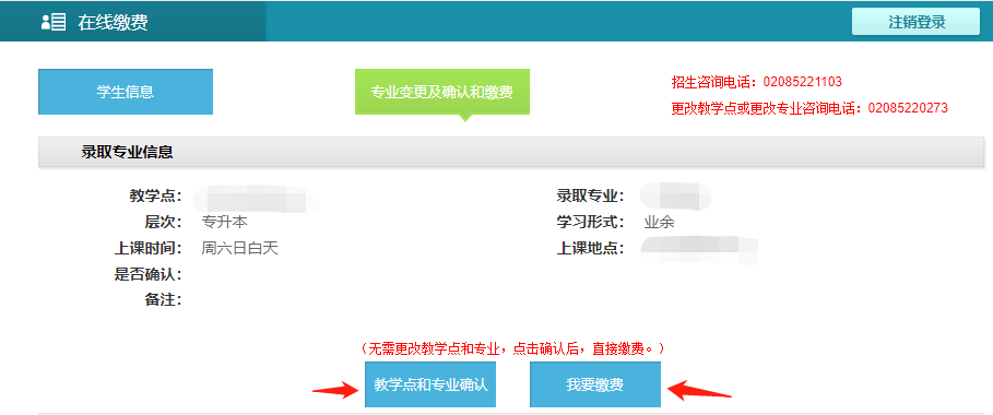 2,新生确认教学点和专业后,再缴费。