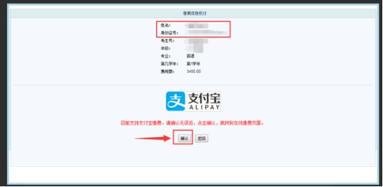 扫码或者登陆支付宝,即可完成缴费。缴费后自动返回(也可自己重新登录注册系统),后台显示:已缴费,表示成功缴费。